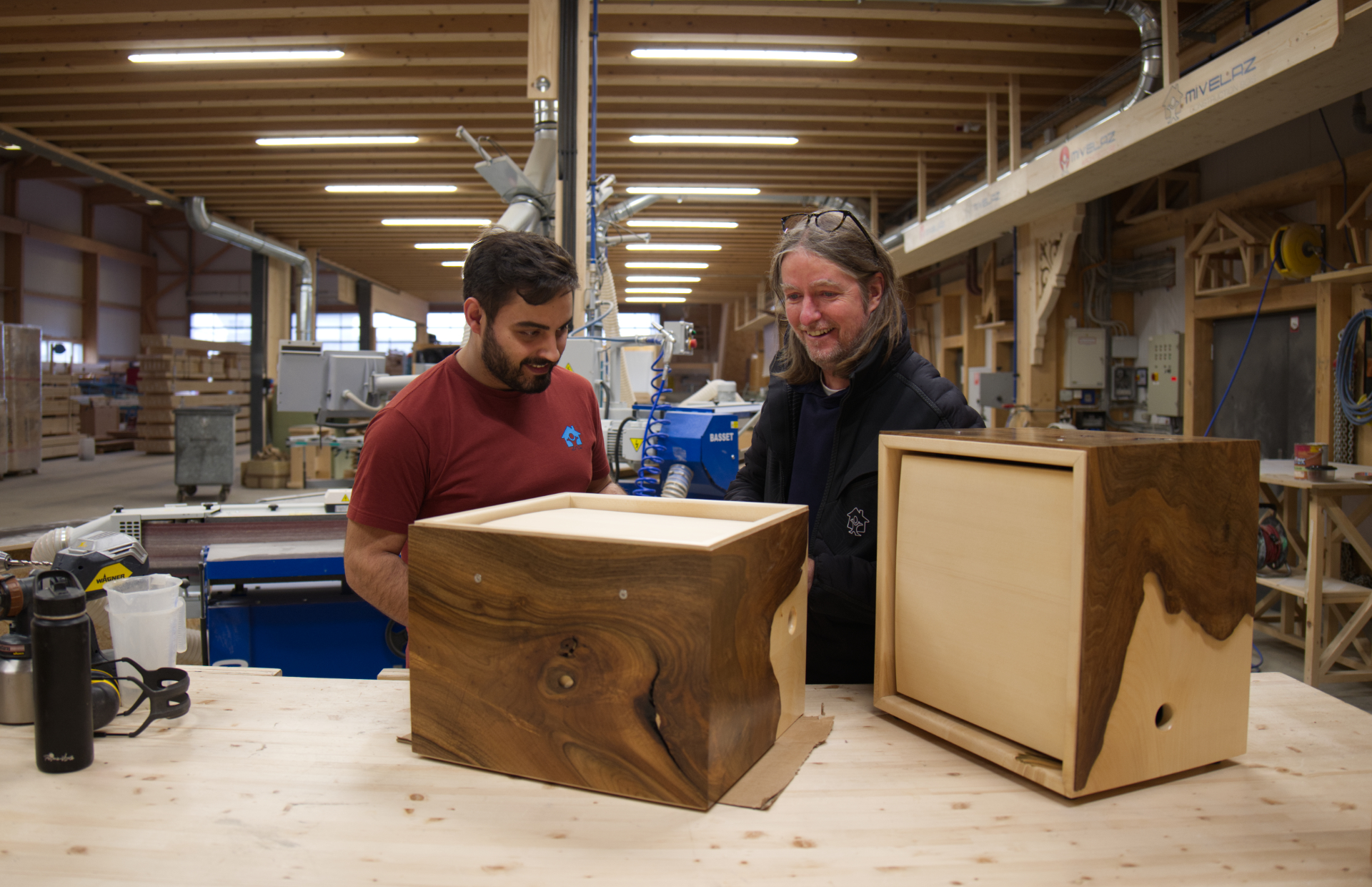 La première série d’Ailim sort alors de notre atelier en Gruyère en 2025. Et depuis quelques années, l’entreprise chine des plateaux de bois d’exception, permettant en plus des modèles classiques, d’avoir des modèles uniques et à forte personnalité.