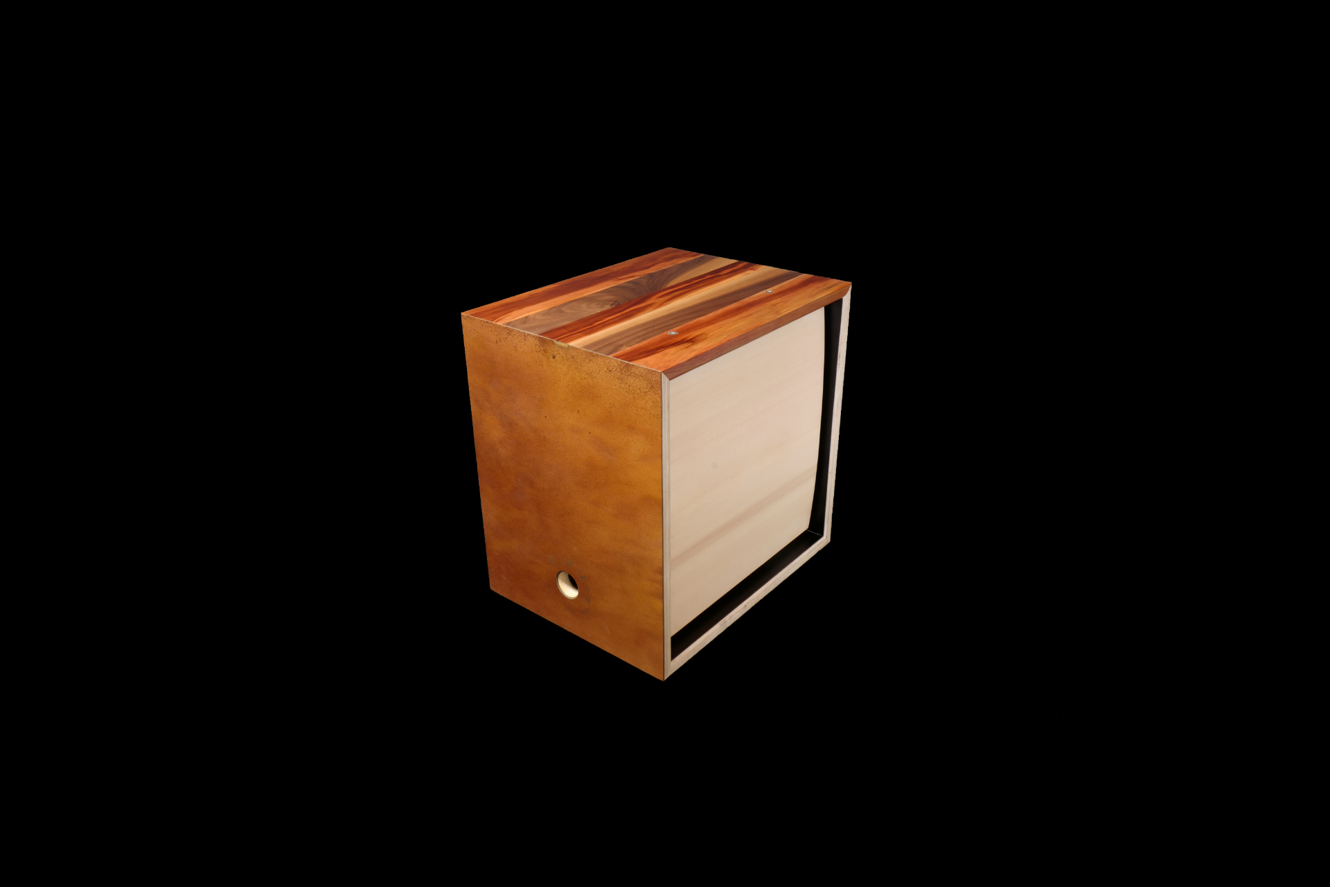 Rouille contreplaquée 3 côtés, dessus en 5 bandes, 2 en noyer, 3 en prunier