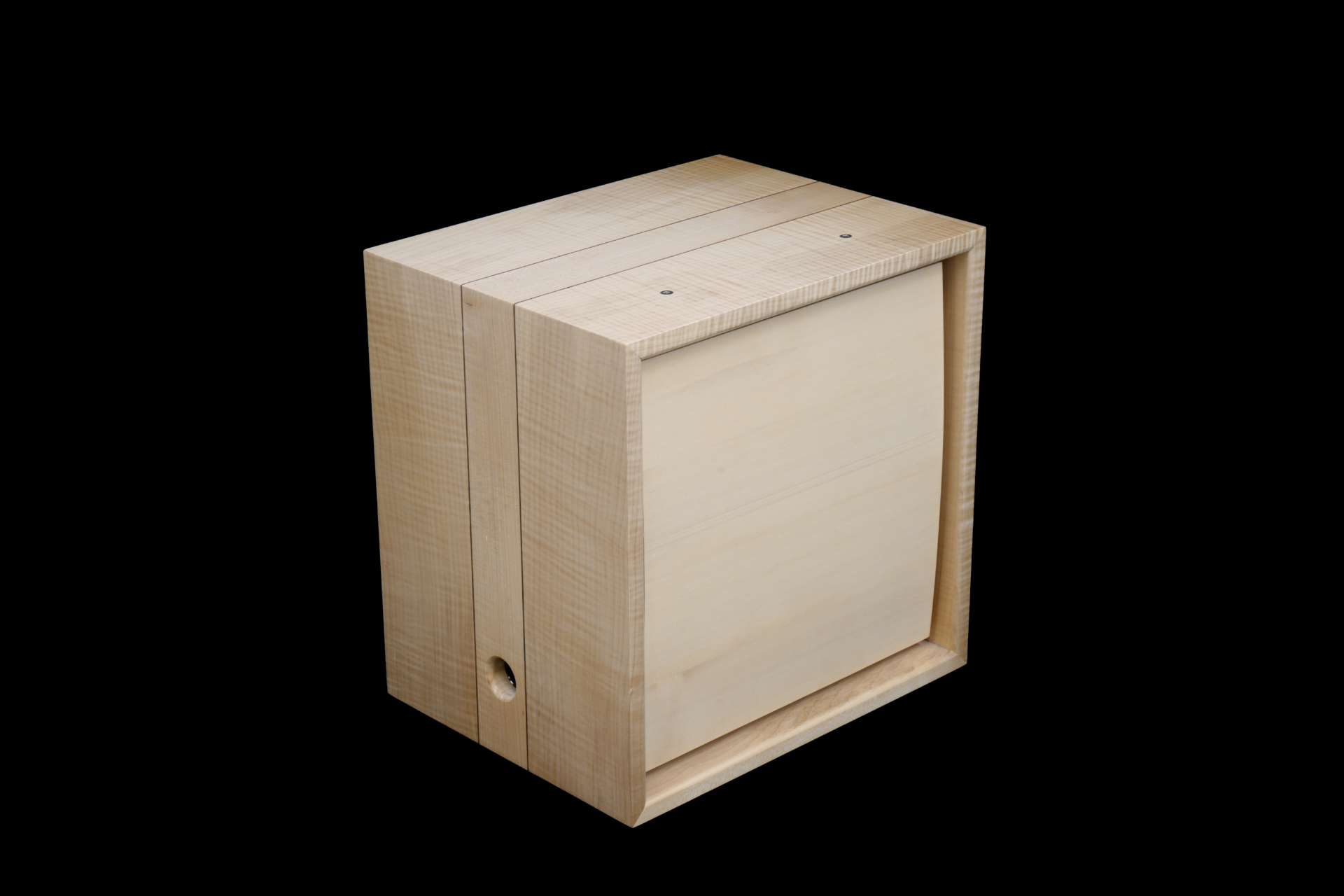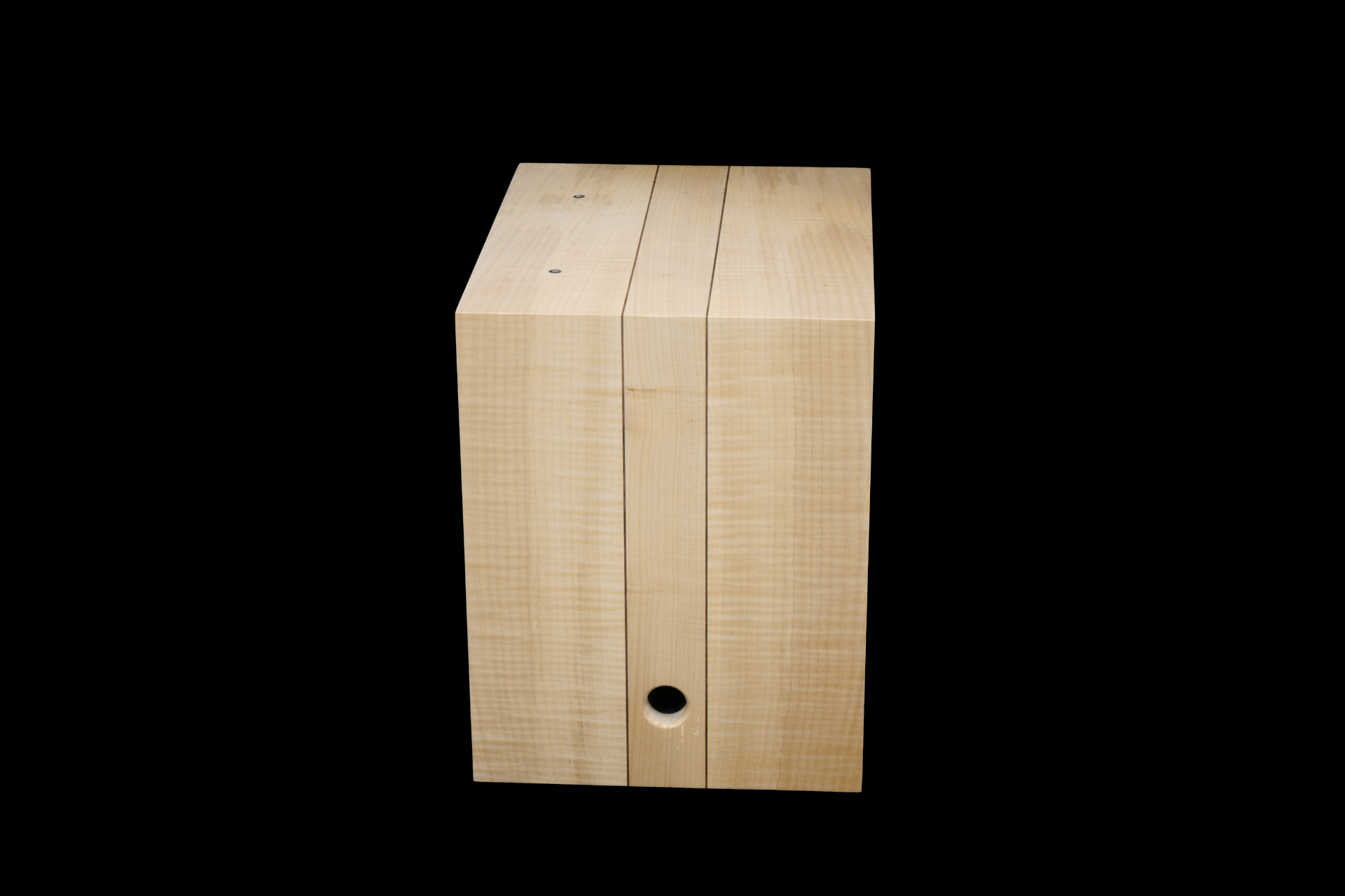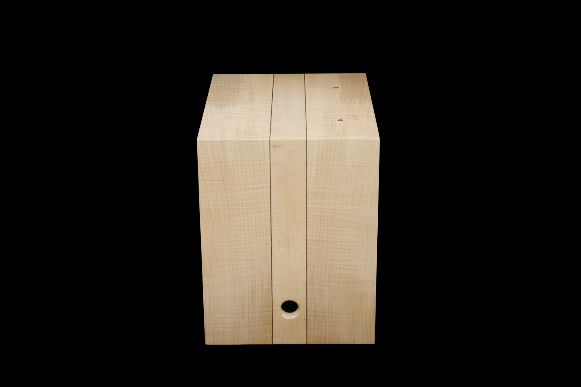 Deux planches extérieures refendues symétriques et filet fin de noyer en séparation.